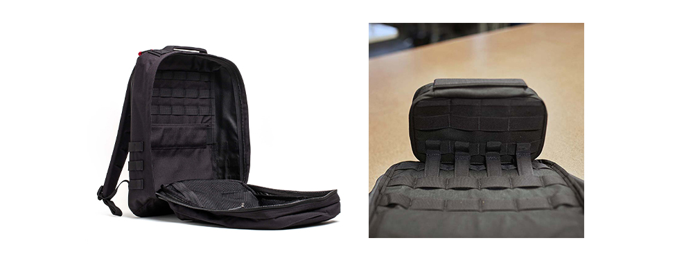 - Caratteristiche principali: Sistema di cinghie MOLLE (per il fissaggio di accessori aggiuntivi), funzionalità di trasporto nascosto