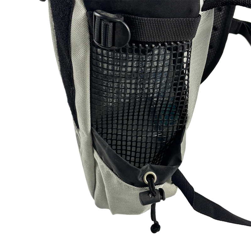 4. Sistema di trasporto ergonomico— Abbiamo utilizzato spallacci a U allargati con imbottitura in schiuma 3D all'interno. Abbinato a una fibbia sul petto, questo design distribuisce notevolmente la pressione su spalle e schiena, riducendo il disagio durante l'uso prolungato, soprattutto durante lunghe pedalate o escursioni.
