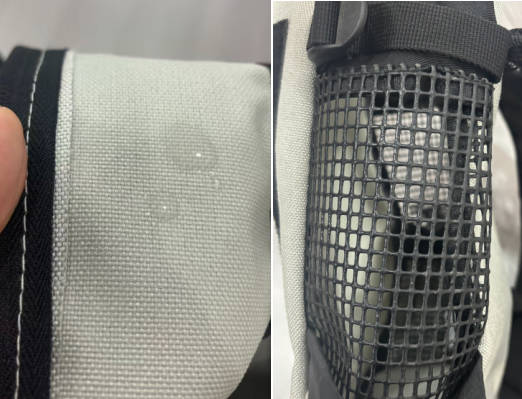 7.Impermeabile e traspirante— Il fondo del tessuto è rivestito con uno strato impermeabile, mentre entrambi i lati dello zaino sono dotati di ampie finestre di ventilazione in rete di PVC. Queste finestre in rete consentono un flusso d'aria naturale durante la pedalata, creando un sistema di circolazione interna dell'aria grazie alla differenza di pressione del vento.