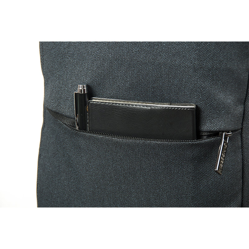 At the back of the bag, near the padded panel, another large zippered compartment provides additional storage space. This compartment also serves a secondary function: when the shoulder strap is not needed, it can be conveniently stored inside, allowing the bag to be carried by hand if desired.