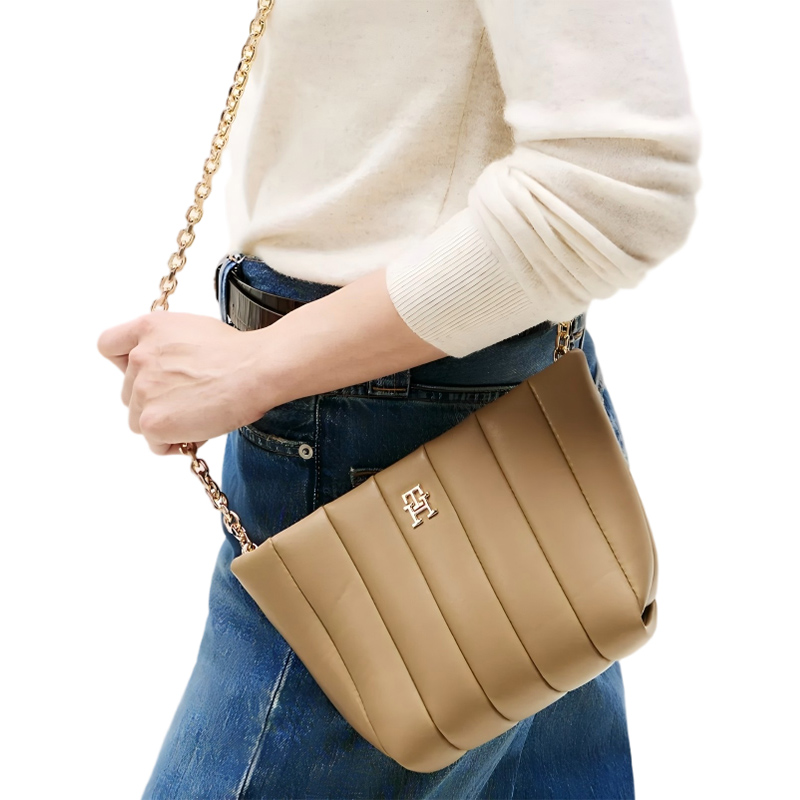 1.1 lbCrafted from high-quality leather, this quilted handbag boasts a polished chain strap, elevating it to the status of a sophisticated chain strap bag. The magnetic closure ensures your belongings are safe, while the TH monogram hardware offers a stylish signature finish. Its compact size makes it a versatile accessory, ideal for those who appreciate both fashion and function.